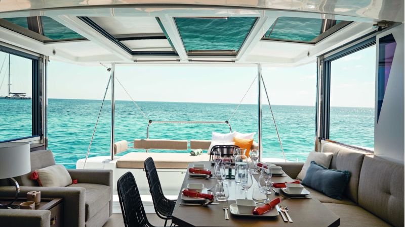 The BALI 4.2 presents all the innovations aboard a boat signed by BALI CATAMARANS. In addition to the essential “BALI door”, there is direct access between the galley and the foredeck through a watertight door, without needing to go around the outside. The various relaxation areas, found on the flybridge and in the rigid forward cockpit offer comfortable sun loungers simply inviting you to laze around and relax.